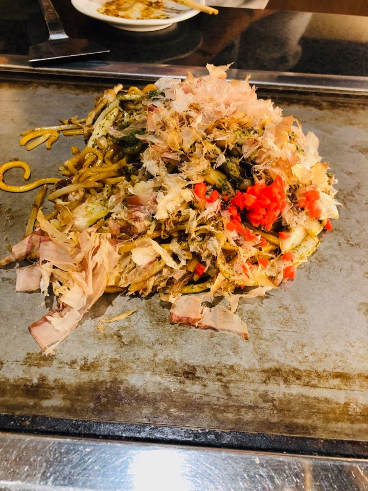 우리는 가장 유명한 돈페야끼, 오꼬노미야끼, 볶음 국수 그리고 맥주 두잔을 시켰다.
